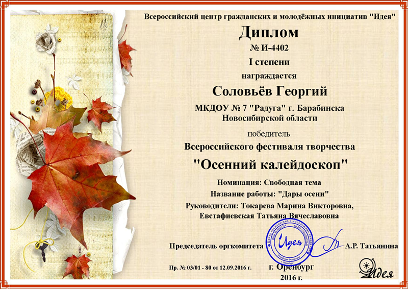 Всероссийский фестиваль творчества "Осенний калейдоскоп"