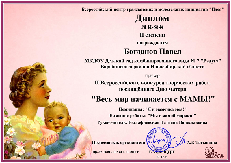 2 Всероссийский конкурс творческих работ, посвященный дню матери "Весь мир начинается с мамы!""